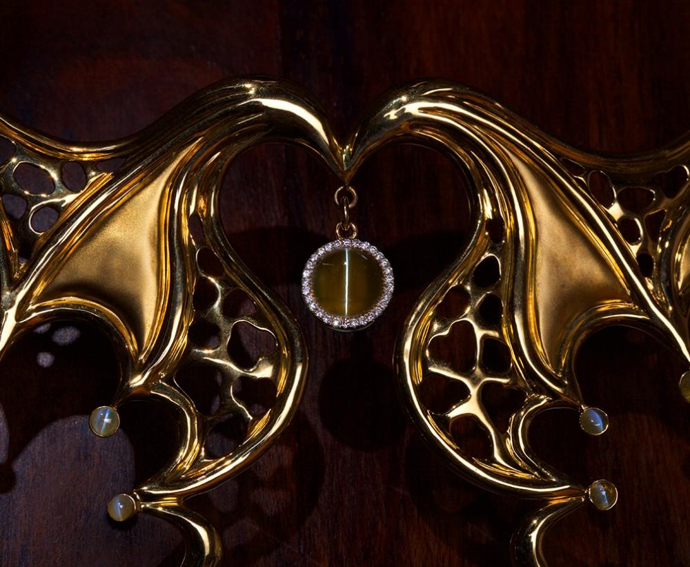 陈世英作品 Wallace Chan 红宝石首饰 Ruby Jewelry 蓝宝石首饰 Sapphire Jewelry 猫眼首饰 Cat's Eye Jewelry 祖母绿首饰 Emerald Jewelry 设计类首饰 Design “Dream-Like”, Chrysoberyl Cat's Eye Necklace In 18K Gold18K yellow gold necklace mounted with diamonds and a 3.59 carat superior quality chrysoberyl cat's eye“如梦” 金绿猫眼18K金链牌18K黄金链牌,镶钻石及3.59克拉高品质金绿猫眼
