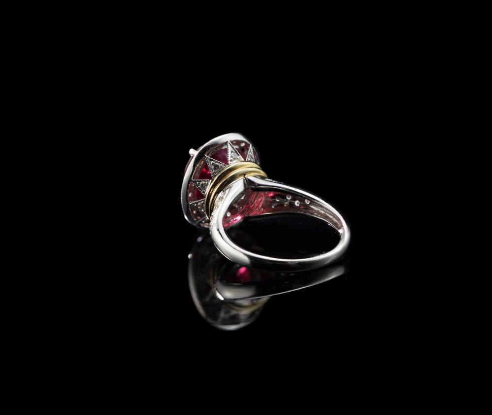 陈世英作品 Wallace Chan 红宝石首饰 Ruby Jewelry 蓝宝石首饰 Sapphire Jewelry 猫眼首饰 Cat's Eye Jewelry 祖母绿首饰 Emerald Jewelry 设计类首饰 Design 7.73 Carat Ruby RingA 7.73 carat superior quality ruby ring mounted in 18K white gold surrounded by diamonds7.73克拉红宝戒指18K白金戒指,镶高品质钻石及7.73克拉红宝石